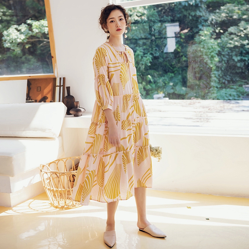 2020 Beach Dress Beach Vacation Vintage Printed Bubble Sleeve Dress Female Bohemian Grand Skirt Shopee Malaysia